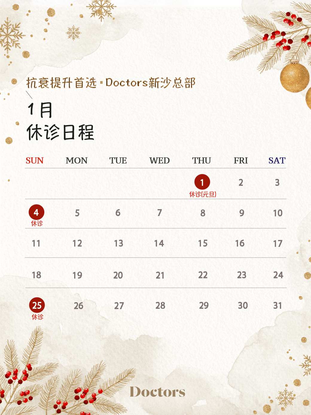 DOCTORS新沙总部1月诊疗日期